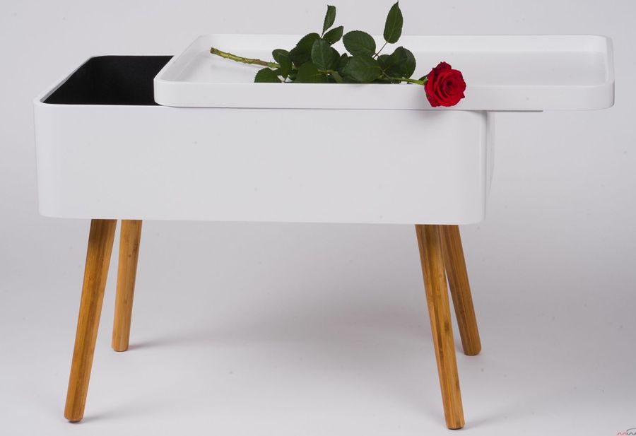 W takim skandynawskim stoliku kawowym można schować np. gazetę, ciastka czy cokolwiek innego. Wnętrze jest wykonane z połyskującej czerni, dlatego nawet lekko otwarty prezentuje się doskonale. Z górnej części stolika można stworzyć klasyczną tacę, dzięki czemu można na niej serwować kawę, herbatę czy deser bez konieczności przenoszenia rzeczy ze zwykłej tacy na stolik. Niewielki rozmiar sprawia, że mebel wygląda estetycznie i podkreśla, aczkolwiek nie przytłacza, ani nie dominuje pomieszczenia, dlatego nie tworzy efektu zagracenia, szczególnie w małych salonach. Wygląda bardzo estetycznie, a precyzja wykonania dodaje mu szyku i klasy. Warto też podkreślić, że brak rowków, wzorów sprawia, że jest dość łatwy w czyszczeniu. Wystarczy wilgotna szmatka i woda, by zachwycał swoim wyglądem. Należy docenić producenta za dbałość o detale, bowiem nawet na nóżkach znajdziemy specjalne zabezpieczenia, dzięki którym przesuwając stolik nie porysujemy podłogi.